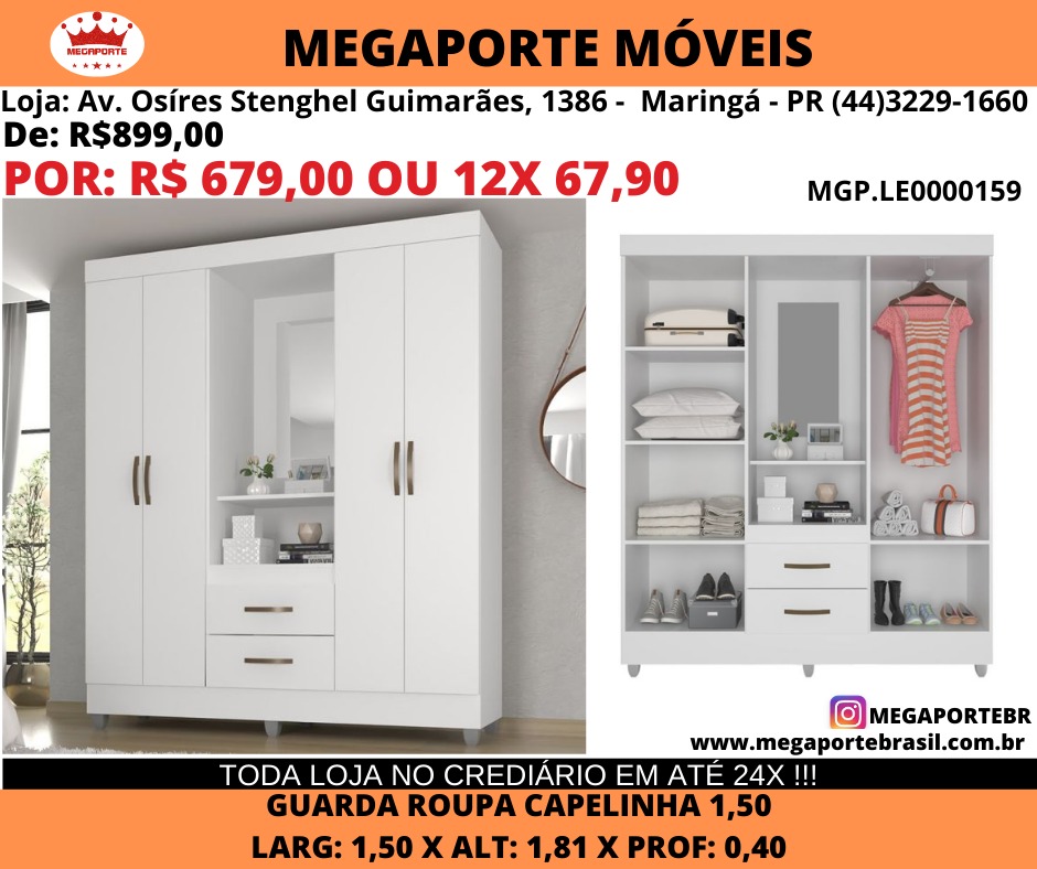 Guarda Roupa Solteiro 1,50M 6p 2g